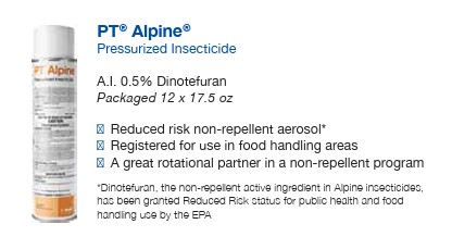 Alpine foam is part of a family of Prescription Treatment brand and contains the active ingredient dinotefuran, a new nonrepellent to the pest control industry that the EPA has granted reduced-risk status for public health use.