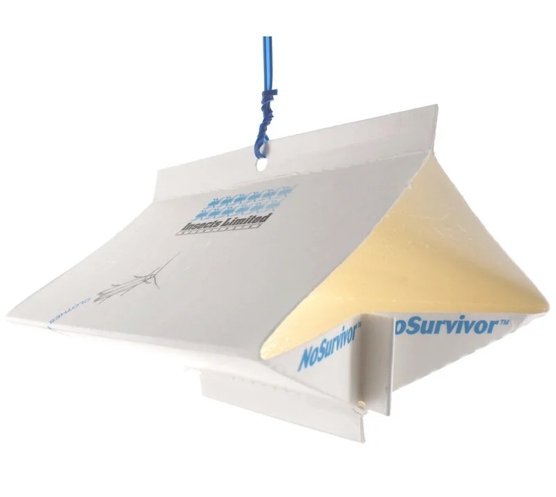 Insect Limited’s signature pheromone Bullet Lures™ that attract three separate species of clothes moth for a controlled release of pheromone over 3 months. The Bullet Lures are paired with the NoSurvivor Trap™. These traps can easily be hung in closets or throughout other living spaces or storage rooms. Moths that are attracted to the lure are readily stuck in the glue upon entering the trap.