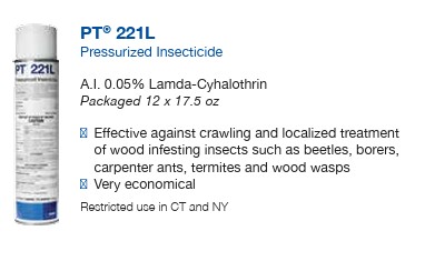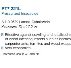 221L is a Prescription Treatment brand residual aerosol that features lamda cyhalothrin. It is effective against a huge range of insects. Packaged in a ready to use 17.5 oz. aerosol, 221L is perfect for making crack & crevice, or spot treatments.