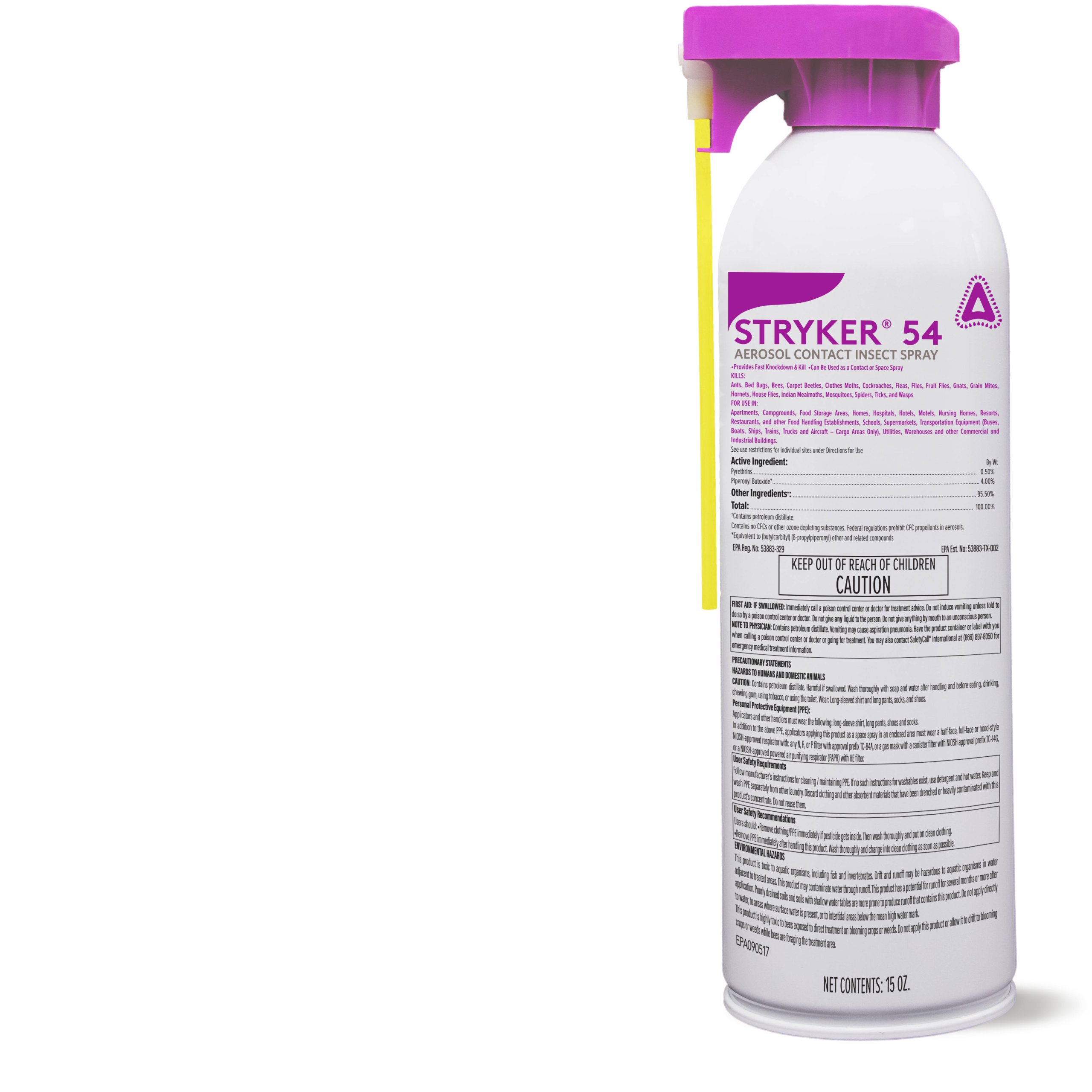 Stryker 54 Aerosol Contact Insect Spray includes an injector that flushes insects out of cracks and crevices. Stryker 54 is useful as an inspection and identification tool.